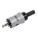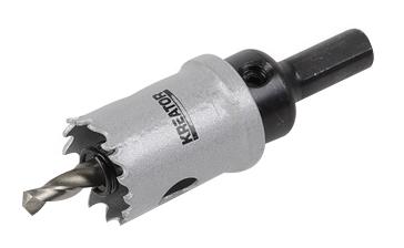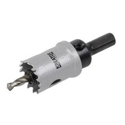 Scie à cloche HSS bi-métal pour la coupe du bois et des plaque de métal de faible épaisseur. Livrée avec son foret centreur équipé d&rsquo,un ressort facilitant l&rsquo,extraction de la carotte.