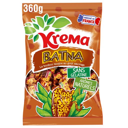 Açúcar, xarope de glucose, gordura de palma, LEITE em pó magro, extrato de alcaçuz, amido de milho, estabilizador (goma de acácia), emulsionante (E471), sal, aromas naturais, regulador de acidez (carbonatos de sódio).