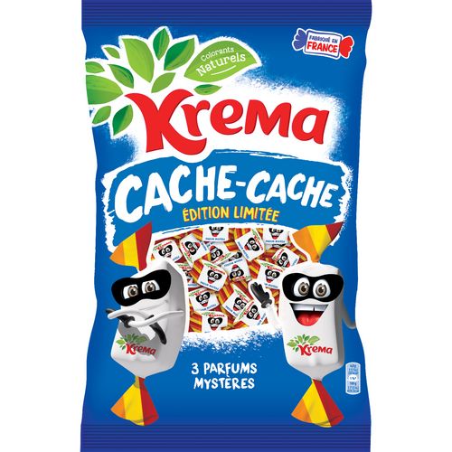 Ingrédients : Sucre, sirop de glucose, huile de palme, amidon de maïs, acidifiant (acide citrique), stabilisant (gomme d'acacia) colorants (anthocyanes, extrait de paprika, lutéine), arômes naturels, émulsifiant (lécithines de tournesol).
