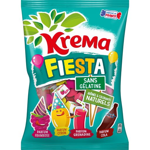 Il n'y avait que 4 goûts : Coca, Grenadine, Framboise et Citron, rien d'autres. Je n'ai pas vu ça sur le paquet, pour moi "Fiesta" c'est un mélange. Donc dommage, ce ne sont pas les arômes que l'on préfère à la maison (excepté le citron). Sinon, sans gélatine, très bien.