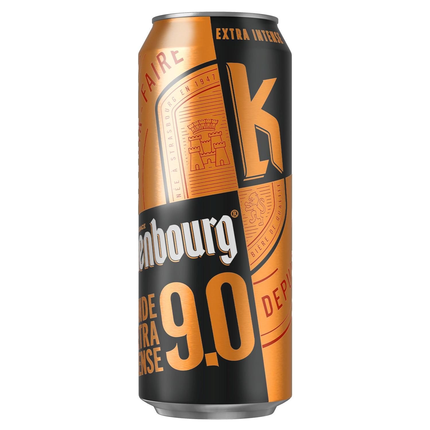 Bière Kronenbourg 9.0 : une bière riche en alcool mais de grande qualité ! Chaque arômes et saveurs sont équilibrés et délivrent une sensation de chaleur en arrière-goût. Elle est brassée à Obernay en Alsace.