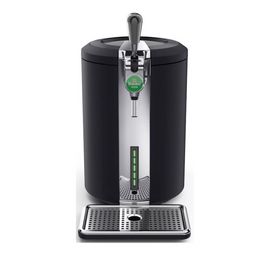 Krups YY5603FD Une machine à bière Krups YY5603FD conçue pour vous offrir le meilleur de la bière pression directement chez vous, avec une mousse épaisse et dense et une température parfaite. Beertender Compact Ultimate vous permet de savourer de délicieuses bières pression depuis le confort de votre maison. Cette machine à bière de qualité supérieure permet de servir de la bière à la température idéale avec une mousse épaisse et onctueuse à chaque fois. Avec son format compact et son interface moderne dotée d'indicateurs de niveau et de température, il garantit un service facile digne d'un professionnel. Compatible avec un large éventail de fûts de bière 5L du groupe Heineken (Heineken, Affligem Blonde, Affligem Blanche, Desperados, Desperados Red, Pelforth, Lagunitas IPA, Gallia). Surveillez facilement la quantité de bière restante dans votre fût grâce à un design moderne doté d'indicateurs de niveau précis. Le format compact de votre Beertender s'intégrera parfaitement dans n'importe quelle cuisine et sa capacité généreuse de 5 L garantit un confort d'utilisation optimal. Impressionnez vos invités en leur offrant une expérience complète avec ce magnifique distributeur de bière pression à couvercle immergé. Faites votre choix parmi un large éventail de marques de fûts de 5 L du groupe Heineken (la disponibilité varie en fonction du pays), une option parfaite pour chaque occasion. Beertender Compact Ultimate, Machine à bière pression, Mousse et température parfaites. Beertender Compact Ultimate, Machine à bière pression, Mousse et température parfaites. Servez votre bière pression comme un pro : attendez simplement que le voyant lumineux intuitif soit vert, vous assurant ainsi que la température idéale de 4 °C est atteinte. Votre bière reste fraîche pendant 30 jours après l'installation et l'ouverture du fût. Pour l'installation, fixez simplement le tube sur le dessus du fût et placez l'extrémité dans le robinet de service. Gardez vos surfaces toujours propres grâce au bac récepteur amovible.