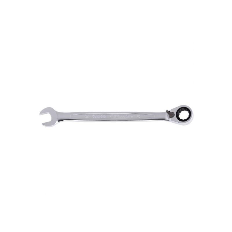 Laclé mixte à cliquet réversible GearPlus KS TOOLS - 10 mm - 503.4610 est dotée d'un angle de fourche de 15° ainsi que d'un oeil incliné à 13°. Le cliquet réversible de 72 dents vous permettra de travailler en minimisant les efforts lors de vos serrages et desserrages. Grâce à une conception solide en chrome-vanadium, vous aurez un outil solide qui respecte les normes DIN 3113 / ISO 3318 / ISO 7738.