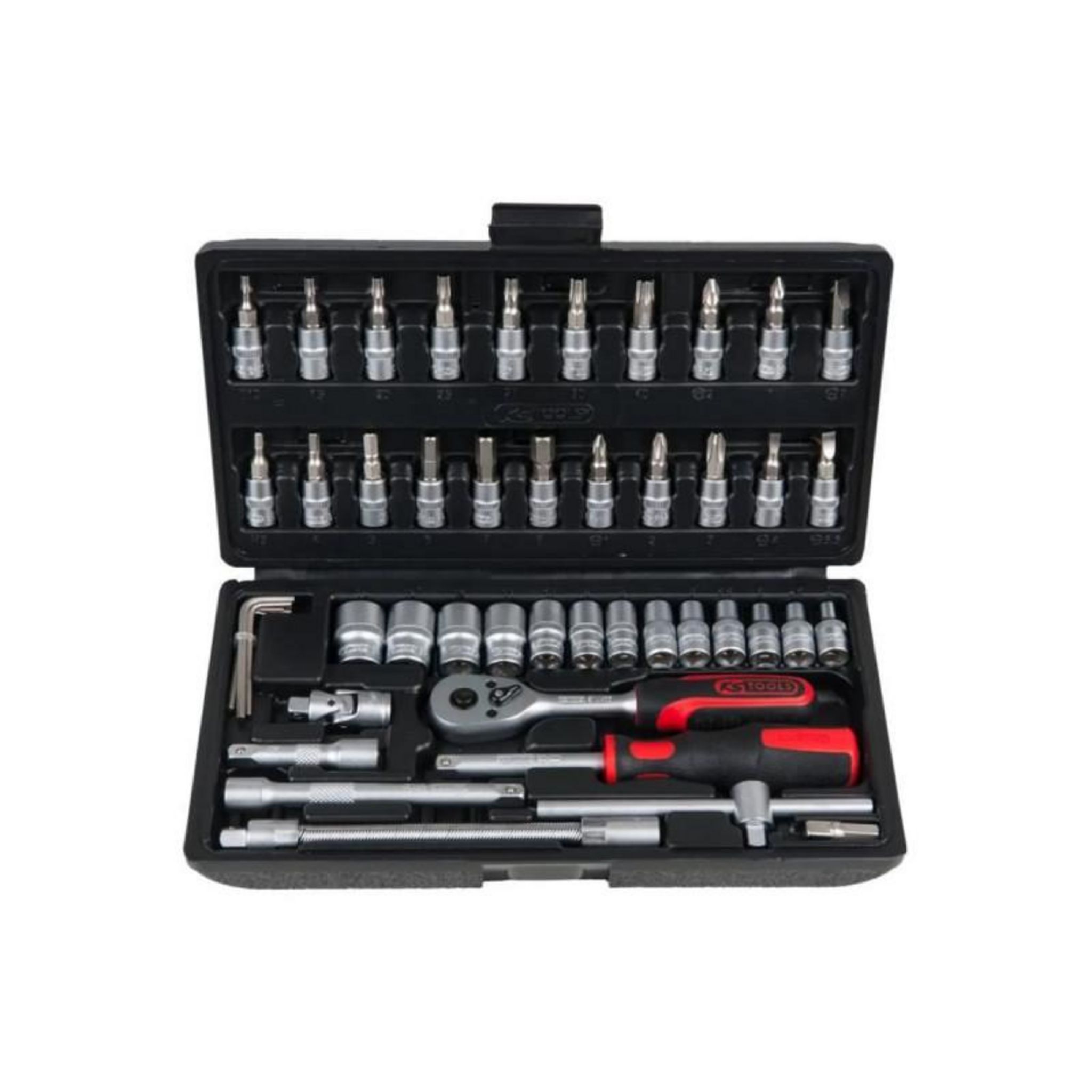 Coffret de douilles F6 KS TOOLS Chromemat - 1/4 - 47 pcs - 917.0648, coffret de douilles et embouts au carré d'entraînement 1/4 comprenant 47 pièces. Le cliquet est particulièrement utile. Optez pour ce coffret complet qui contient également rallonges, embouts, porte embouts, adaptateurs, clé, douilles...