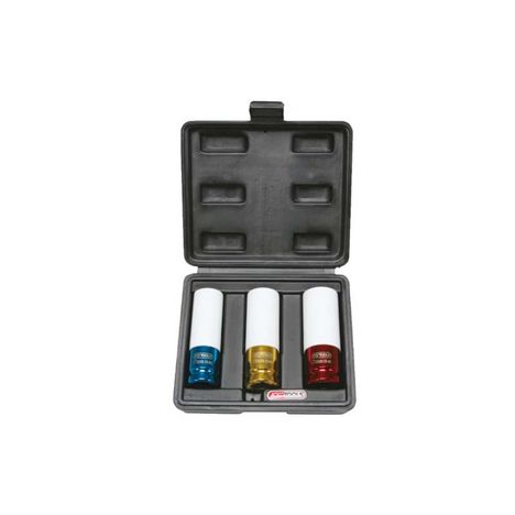 Jeu de 3 douilles à chocs KS TOOLS Pour jantes aluminium - 04-19-21mm - 1/2 - 515.1005, douilles spéciales pour le montage démontage de roue. Possède un revêtement ABS pour ne pas endommager les jantes en aluminium.
