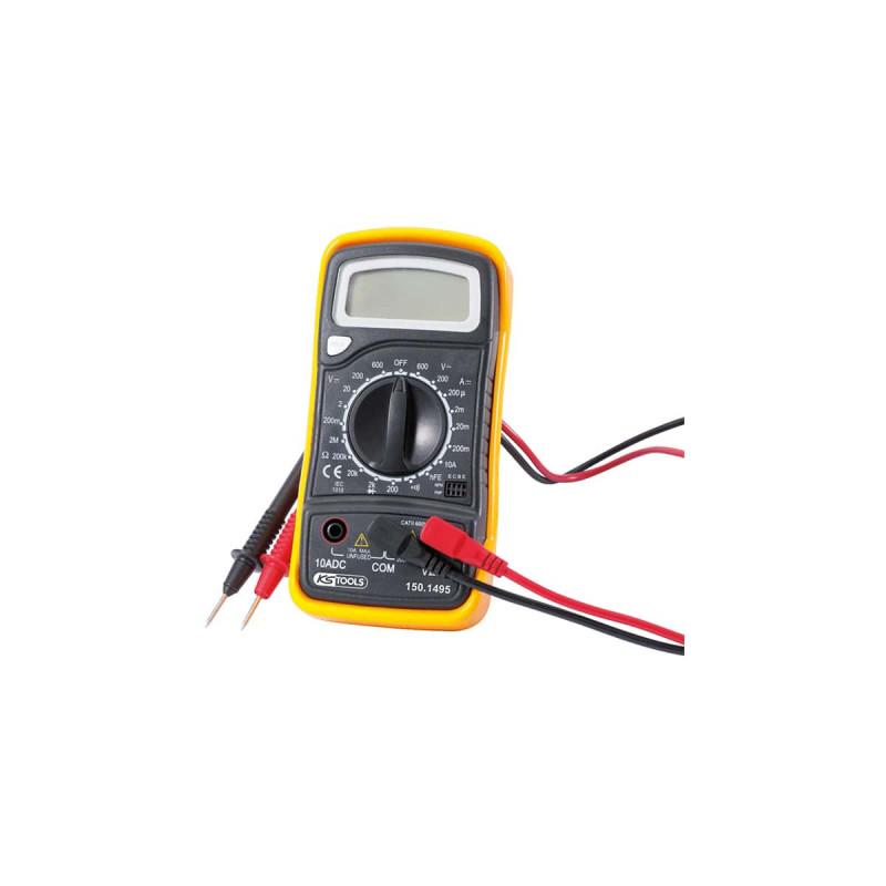 Multimètre KS TOOLS - Digital - 200V-600V - 150.1495, appareil regroupant plusieurs instruments permettant de contrôler le transistor, tester le diode avec signal sonore ou même tester la continuité.