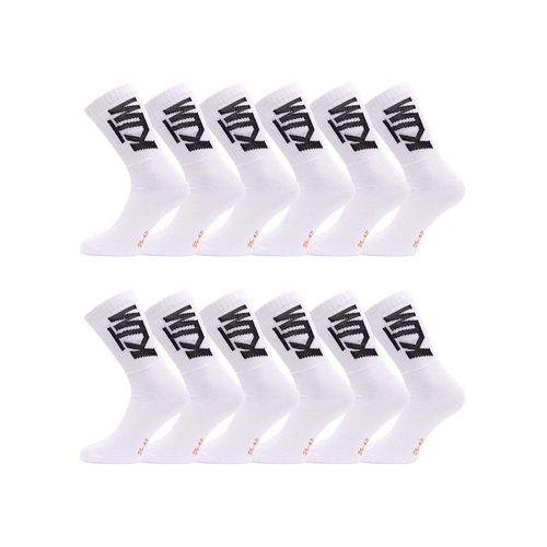 Équipez-vous pour l'action avec le Lot de 12 Chaussettes Homme KTM. Ces chaussettes hautes pour homme sont conçues pour les amateurs de sportswear à la recherche de confort et de maintien.Disponibles en deux ensembles de couleurs, blanc et noir ou noir et orange, ces chaussettes sont à la fois fonct