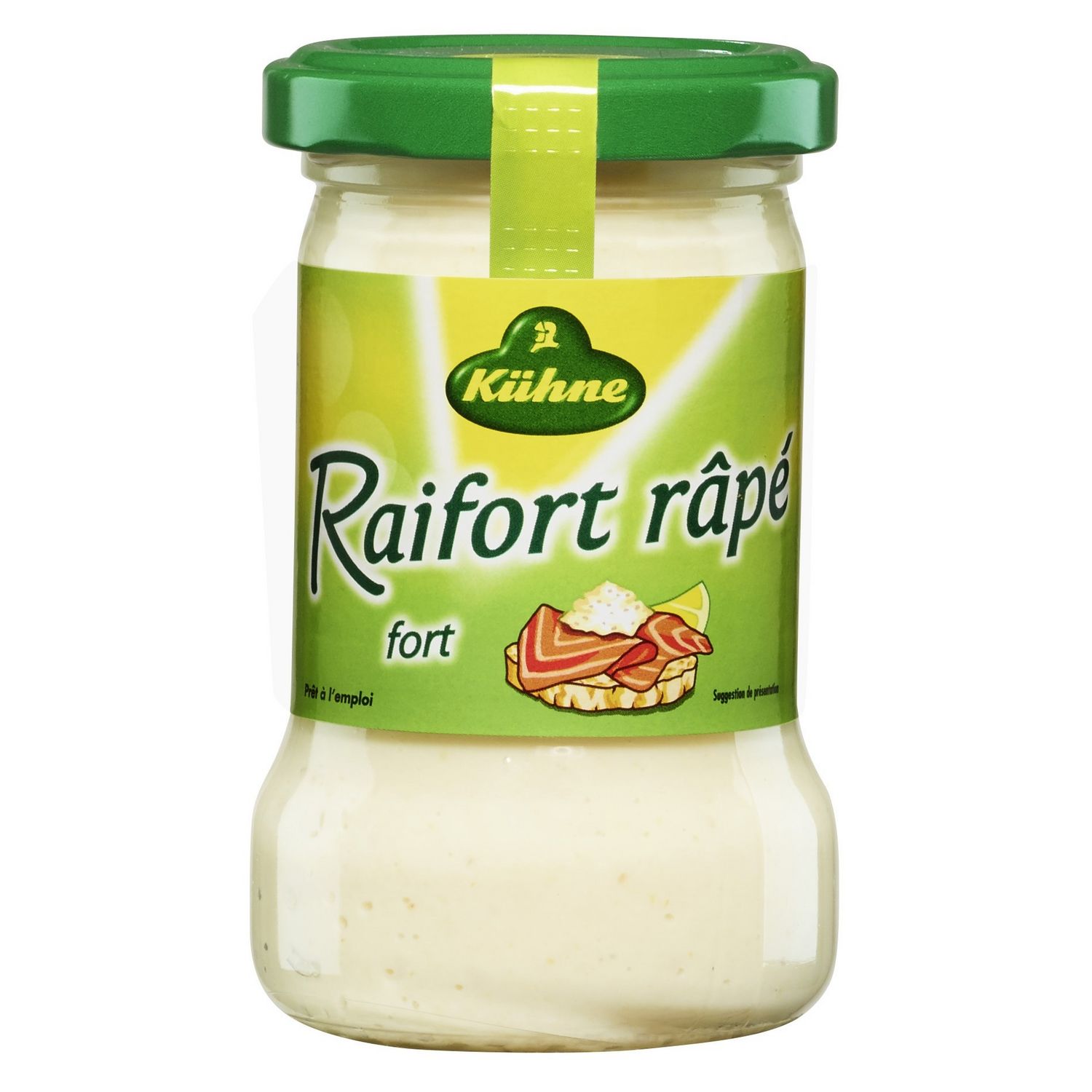 Préparé selon la recette traditionnelle Kühne, le raifort authentique est un condiment élaboré à partir de racines de raifort fraichement râpées, ce qui lui confère cette saveur forte et piquante aux notes poivrées si particulières. Alternative origi