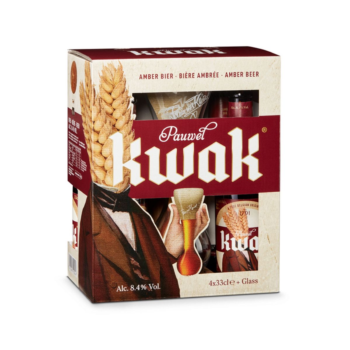 Bière au corps moyen avec un caractère riche et chaleureux et des saveurs rappelant celles des fruits d’arbres et du pain d’épice. Sa note finale sèche se prolonge sur une arrière bouche épicée au Bière Kwak Coffret - 4x33cl + 1 verre