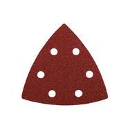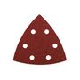 20 patins abrasifs triangulaires, 93 mm, BOIS et, MÉTAL, corindon affiné à l´,oxyde d´,aluminium entièrement lié à la résine synthétique, support renforcé, avec dos velours auto-agrippant. Patins perforés, pour ponceuses delta/triangulaires, pour métal et bois, la peinture, le vernis, la s