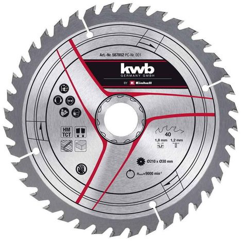 Lame de scie TCT 40 dents, Ø, 210 mm, alésage central 30 mm, épaisseur 1,2 mm Pour bois durs, bois tendres, contreplaqués, bois composites et PVC Pour Einhell TC-TS 1200, TE-SM 36/210, TC-SM 2131 Dual, TE-MS 18/210, TC-MS 2112