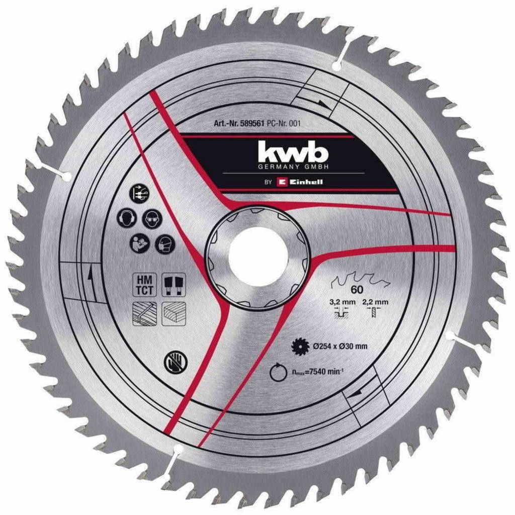 Lame de scie TCT 60 dents, Ø, 254 mm, alésage central 30 mm, épaisseur 2,2 mm Pour bois durs, bois tendres, contreplaqués et bois composites Pour Einhell TC-TS 2025/2 eco, TC-SM 254 et TC-SM 2531/1 U Produit de haute qualité