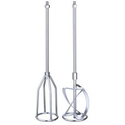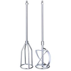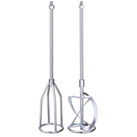 Le kit comprend deux agitateurs. Le premier agitateur permet de mélanger et malaxer le bitume, la résine époxy et les colles. Le second agitateur s&rsquo,utilise pour les enduits et mortiers. Les deux accessoires ont une longueur totale de 585 mm et un diamètre de malaxage de 120 mm. Pour tous les mélangeurs pour peinture et mortier à filetage M14