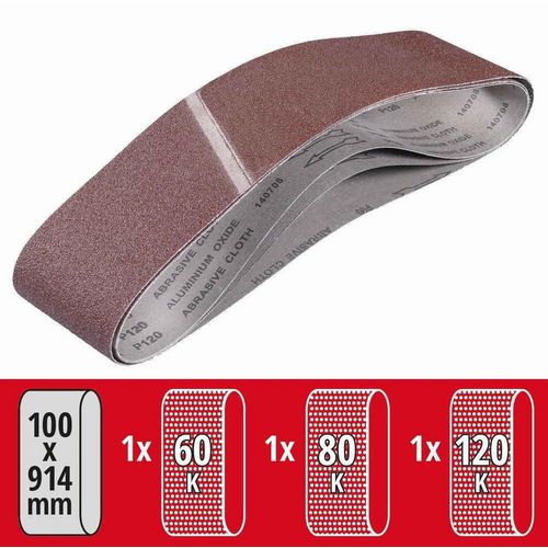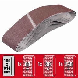 Lot de 3 bandes de ponçage 100x915 mm