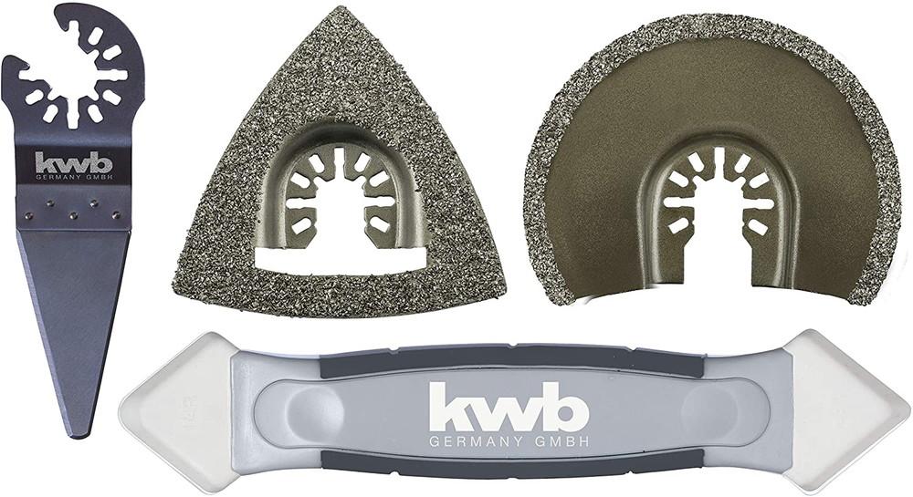 Set de 4 outils multifonctions pour le carrelage (1 râpe, 2 lames de scie, 1 grattoir)