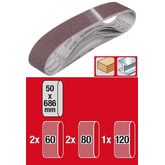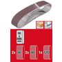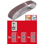 Le kit comprend cinq bandes de ponçage. Les dimensions des bandes de ponçage sont de 50 x 686 mm. Pour bois et métal 2 bandes de ponçage K60, 2 bandes de ponçage K80 et 1 bande de ponçage K120 Pour ponceuses à bande stationnaires TH-US 240 et TC-US 350 Einhell