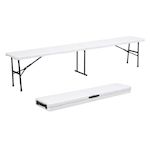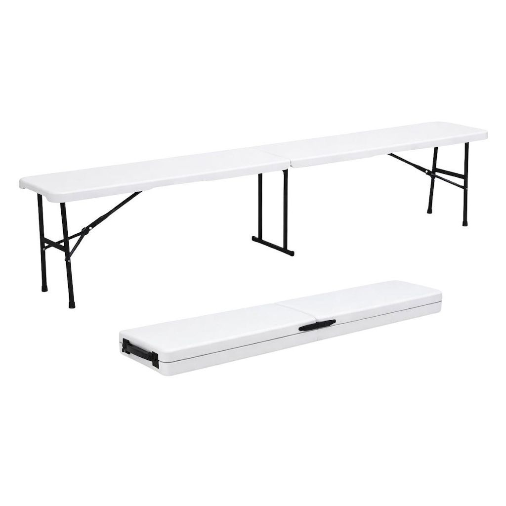 Banc de Jardin Pliable Blanc 180 x 28 x 43.5H cm Banc Exterieur Interieur Camping Réception KZ GARDEN