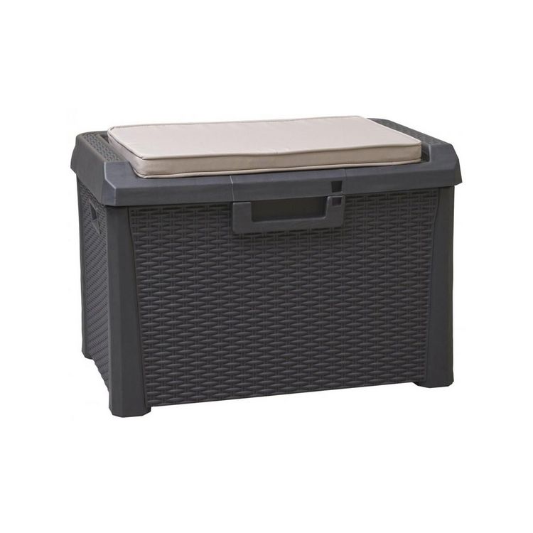 Coffre de jardin 125L Coussin compris Effet rotin L73xP50xH49 cm Résine Résiste au gel, intempéries et UV