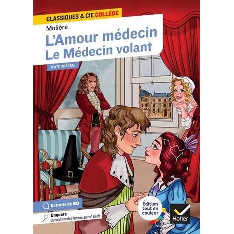 Deux petites comédies de Molière qui font la satire des médecins et des pères autoritaires. Dans une édition tout en couleurs, enrichie de nombreux outils pédagogiques. En lien avec les objets d'étude Se masquer, jouer, déjouer : ruses en action du nouveau programme de 6e. Les deux pièces Comment épouser celui qu'on aime quand son père s'y oppose ? Lucile et Lucinde ont la même idée : feindre la maladie et profiter de la crédulité de leur père. Dans ces deux comédies particulièrement drôles et rythmées, Molière raille tout autant la médecine de son époque que l'autorité abusive des pères sur leurs filles. Avec des planches de BD Les scènes clés du Médecin volant sont également proposées en BD dans une adaptation qui respecte parfaitement le texte original : un support idéal pour rendre la pièce plus attractive et enrichir son étude. Les compléments pédagogiques 1. Un avant-texte pour préparer sa lecture 2. Quiz et missions au fil du texte 3. Un parcours de lecture analytique, avec des repères littéraires 4. Des exercices de théâtre 5. Une enquête sur la condition des femmes au XVIIe siècle 6. Un carnet de lecteur pour exprimer ses impressions Le livre du professeur Dans le guide pédagogique, téléchargeable sur www. editions-hatier. fr (Lien -> http : //www. editions-hatier. fr/), l'enseignant trouvera un descriptif complet de la séquence proposée et les corrigés des questionnaires.