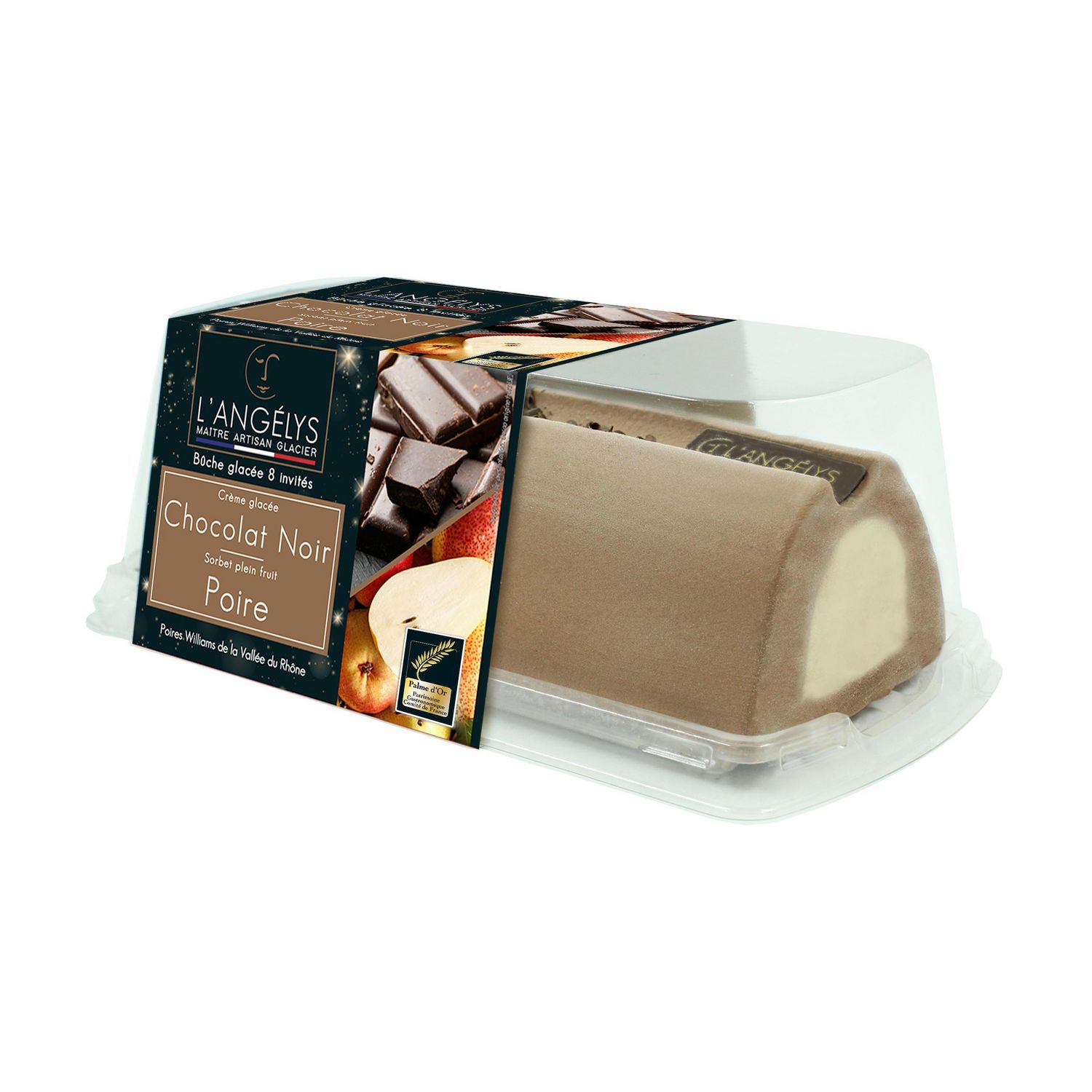 Bûche glacée chocolat noir et sorbet poire