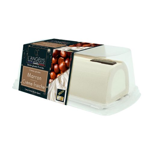Onctueuse et gourmande, laissez-vous tenter par notre bûche glacée crème glacée Marrons et crème glacée Crème fraîche !