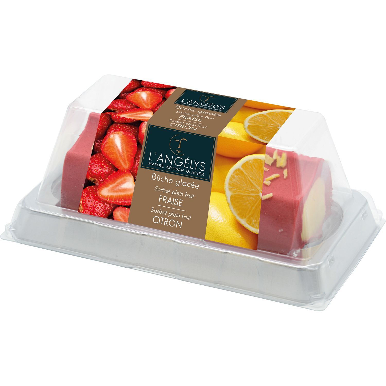 Bûche sorbet plein fruit fraise et citron jaune
