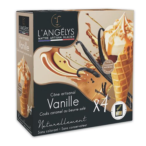 Cône artisanal crème glacée vanille coulis caramel beurre salé