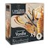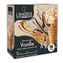 Cornet gaufrette garni de crème glacée Vanille (infusion de gousses entières de vanille), de coulis de caramel, de chocolat et d'éclats de sucre caramélisé