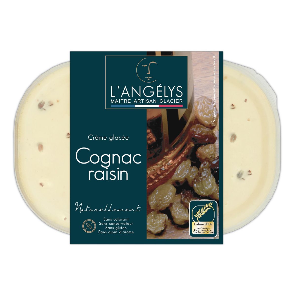 Dégustez cette audacieuse crème glacée et savourez ses raisins généreusement imbibés d'un Cognac XO de producteurs viticulteurs dans le cru des Fins Bois.
