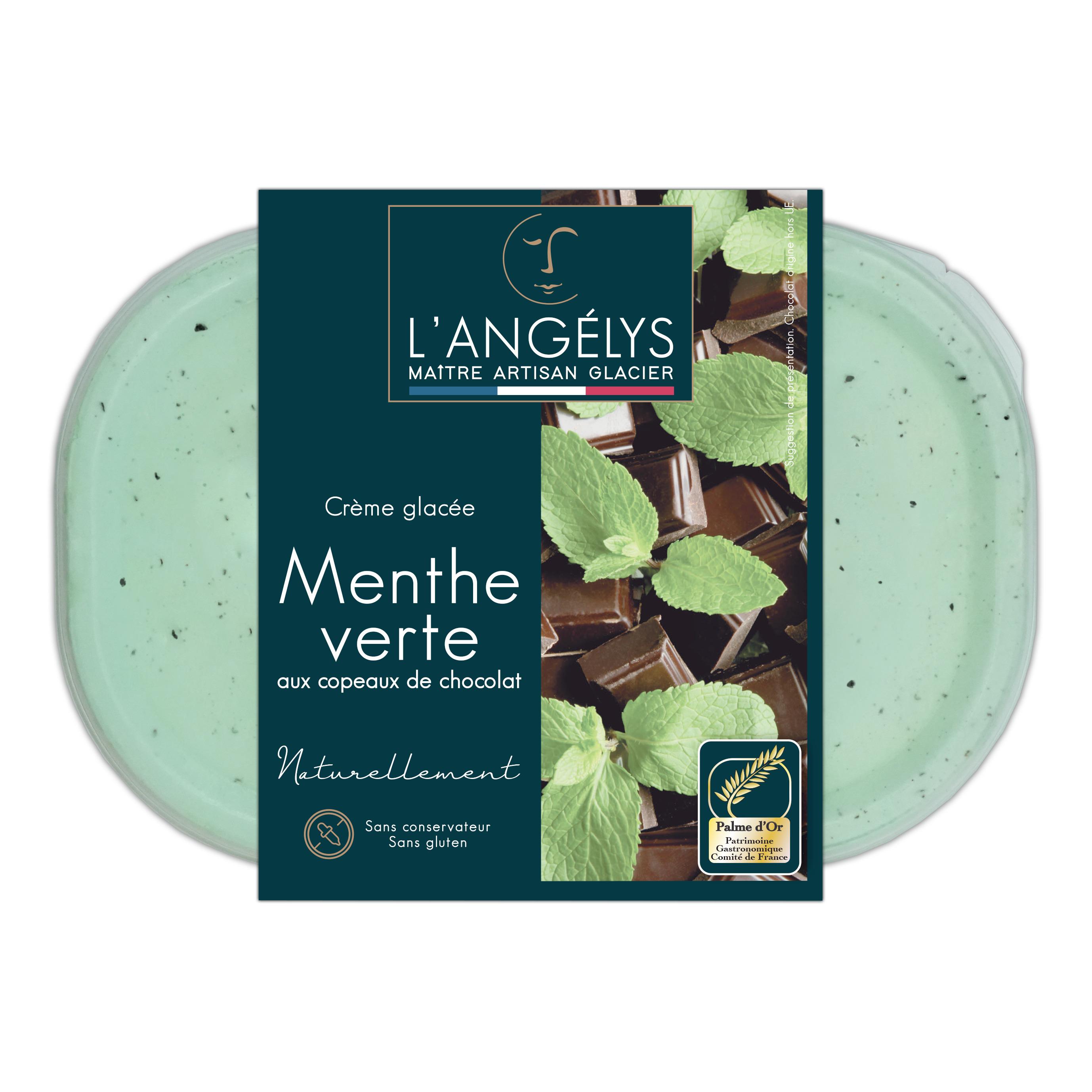 Crème glacée Menthe (arômes naturels) et copeaux de chocolat