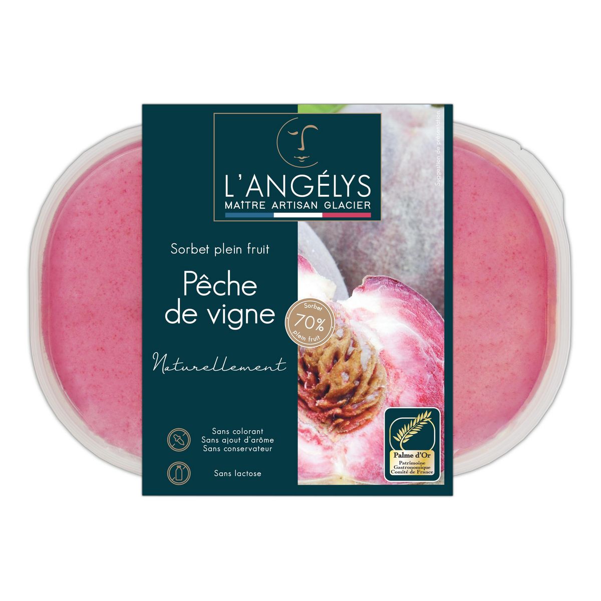 Des pêches de vigne cueillies à pleine maturité et juteuses, pulpées, façonnées en sorbet après une maturation lente : c'est ça la patte de notre Maître Artisan glacier, une patience nécessaire pour conjuguer naturalité et gourmandise.