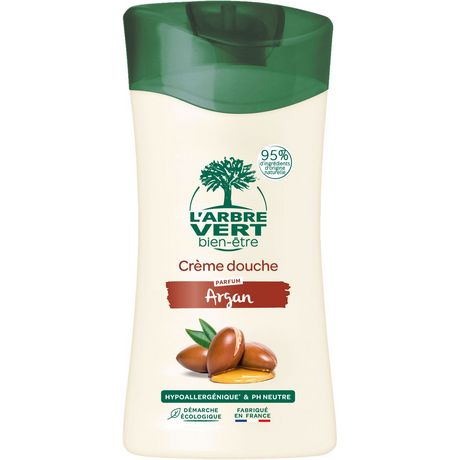 L'Arbre Vert bien-être#crème#douche#nourrissant#Écologique#Hypoallergénique#Peau sensible#sans colorants#sans éthers de glycol#sans formaldéhyde#sans parabènes#sans isothiazolinones#sans phénoxyéthanol#sans phtalates#sans EDTA#Fabriqué en France#Argan