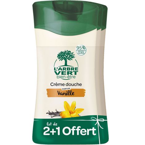 L'Arbre Vert Bien-être Crème Douche Relaxante aux extraits de Vanille de Madagascar - Hypoallergénique - 95% d'ingrédients d'origine naturelle - 3x250mL - 2+1 OFFERT