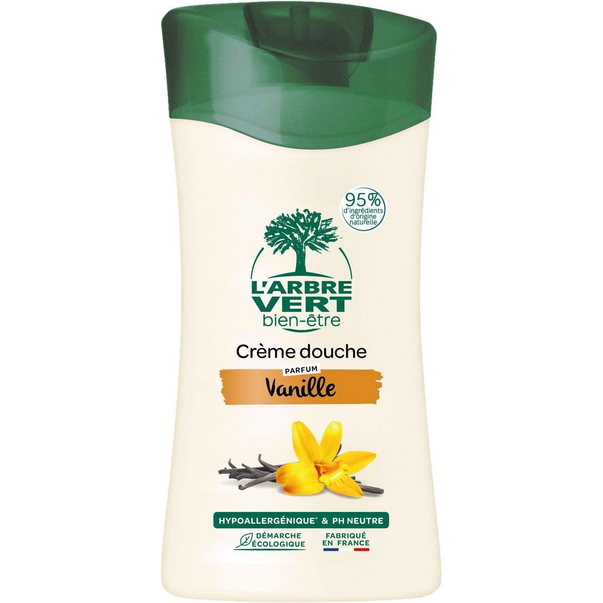 L'Arbre Vert Bien-être Crème Douche Parfum Vanille - pH neutre & Hypoallergénique - 95% d'ingrédients d'origine naturelle - 250mL