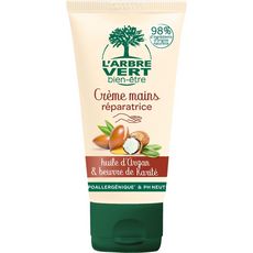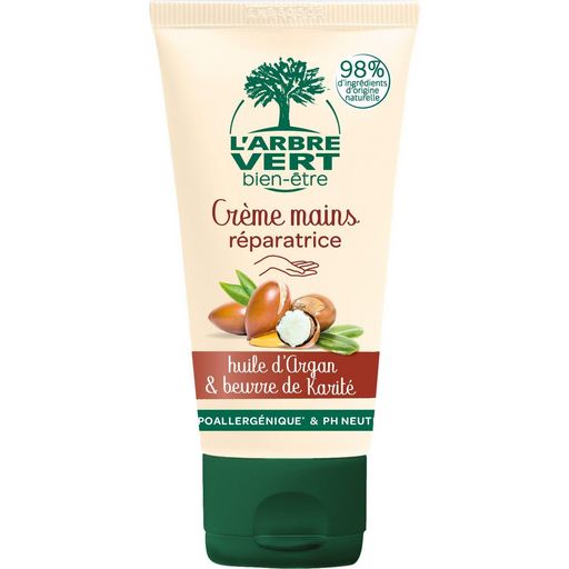 L'Arbre Vert Bien-être Crème mains réparatrice à l'huile d'argan et beurre de karité - Hypoallergénique & pH Neutre - 98% d'ingrédients d'origine naturelle - 75mL
