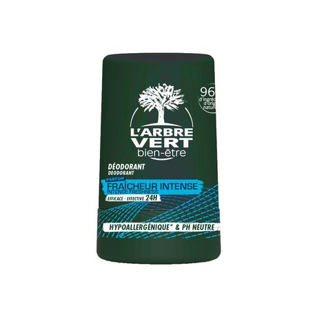 L'Arbre Vert Bien-être Déodorant Homme parfum Fraicheur Intense - Efficace 24 H - Hypoallergénique & pH Neutre - 93% d'ingrédients d'origine naturelle - 50mL