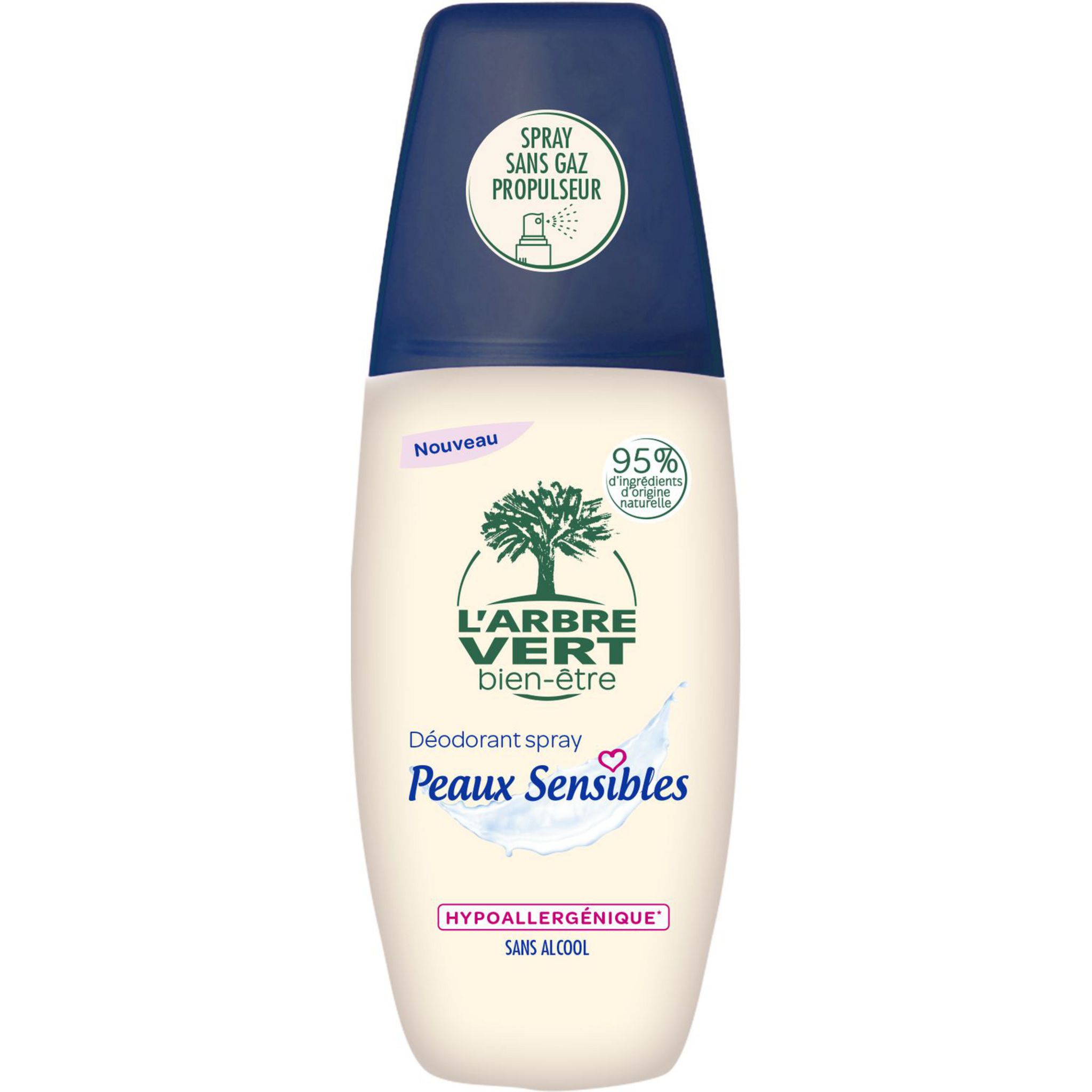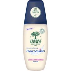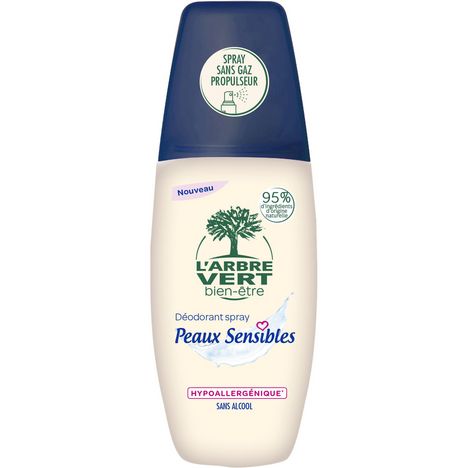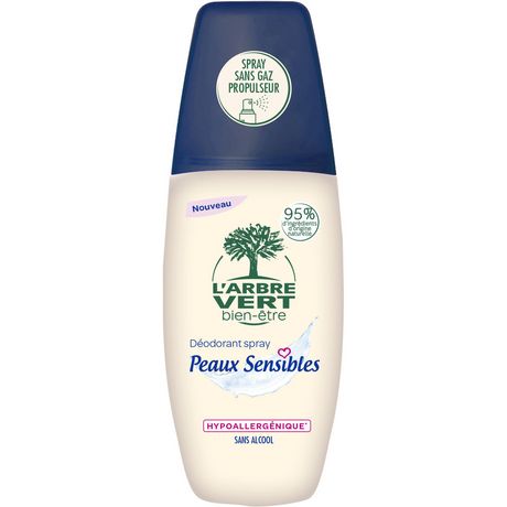 L'Arbre Vert Bien-être Déodorant Spray sans Gaz Peaux Sensibles - Sans Alcool - Hypoallergénique - 95% d'ingrédients d'origine naturelle - 75mL