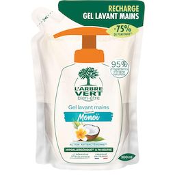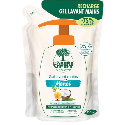 L'Arbre Vert Bien-être Recharge Crème Lavante Mains Parfum Monoï - Action antibactérienne - Hypoallergénique & pH Neutre - 95% d'ingrédients d'origine naturelle - 300mL