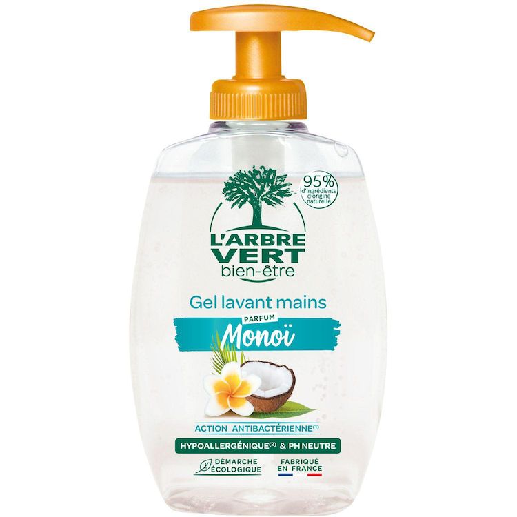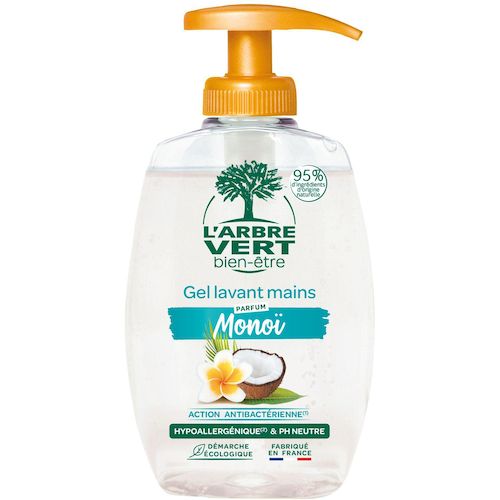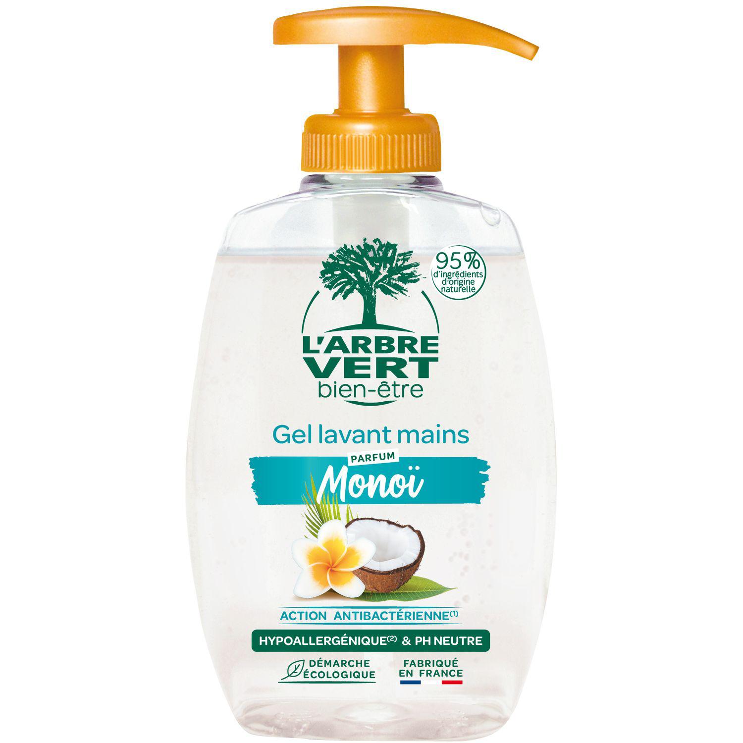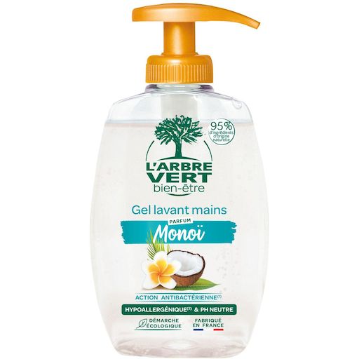 L'Arbre Vert Bien-être Gel Lavant Mains Parfum Monoï - Action antibactérienne - Hypoallergénique et pH Neutre - 95% d'ingrédients d'origine naturelle - 300mL
