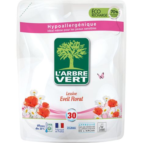 Cette recharge lessive hypoallergénique Éveil Floral 30 lavages est idéale pour le linge de tout la famille.Les lessives concentrées L’ARBRE VERT respectent la personne et l’environnement. Lessive liquide fabriquée en France.