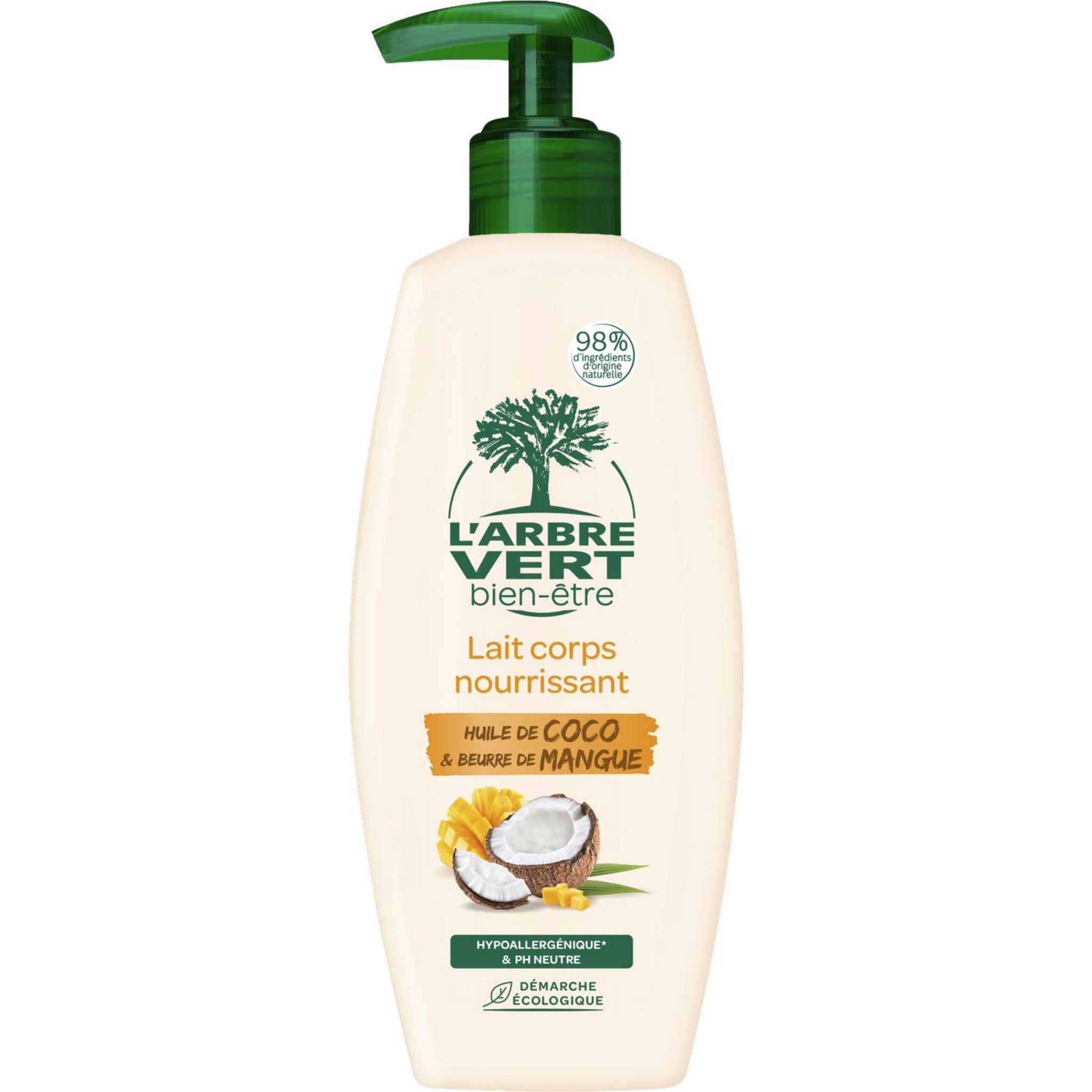 L'Arbre Vert Bien-être Lait corps nourrissant à l'huile de Coco et beurre de Mangue - Hypoallergénique & pH Neutre - 98% d'ingrédients d'origine naturelle - 250mL