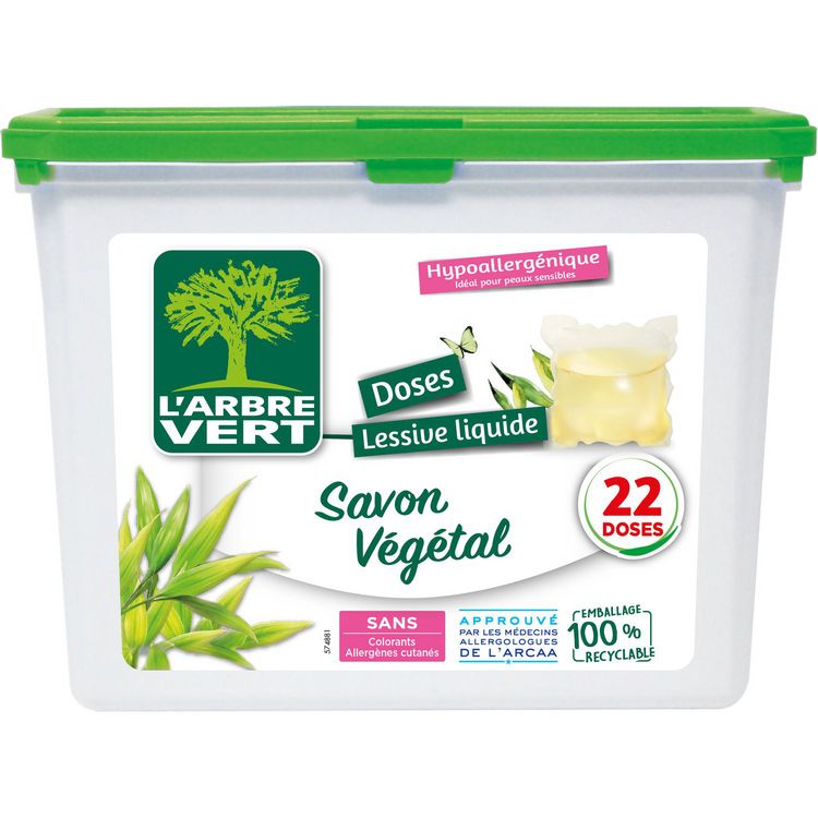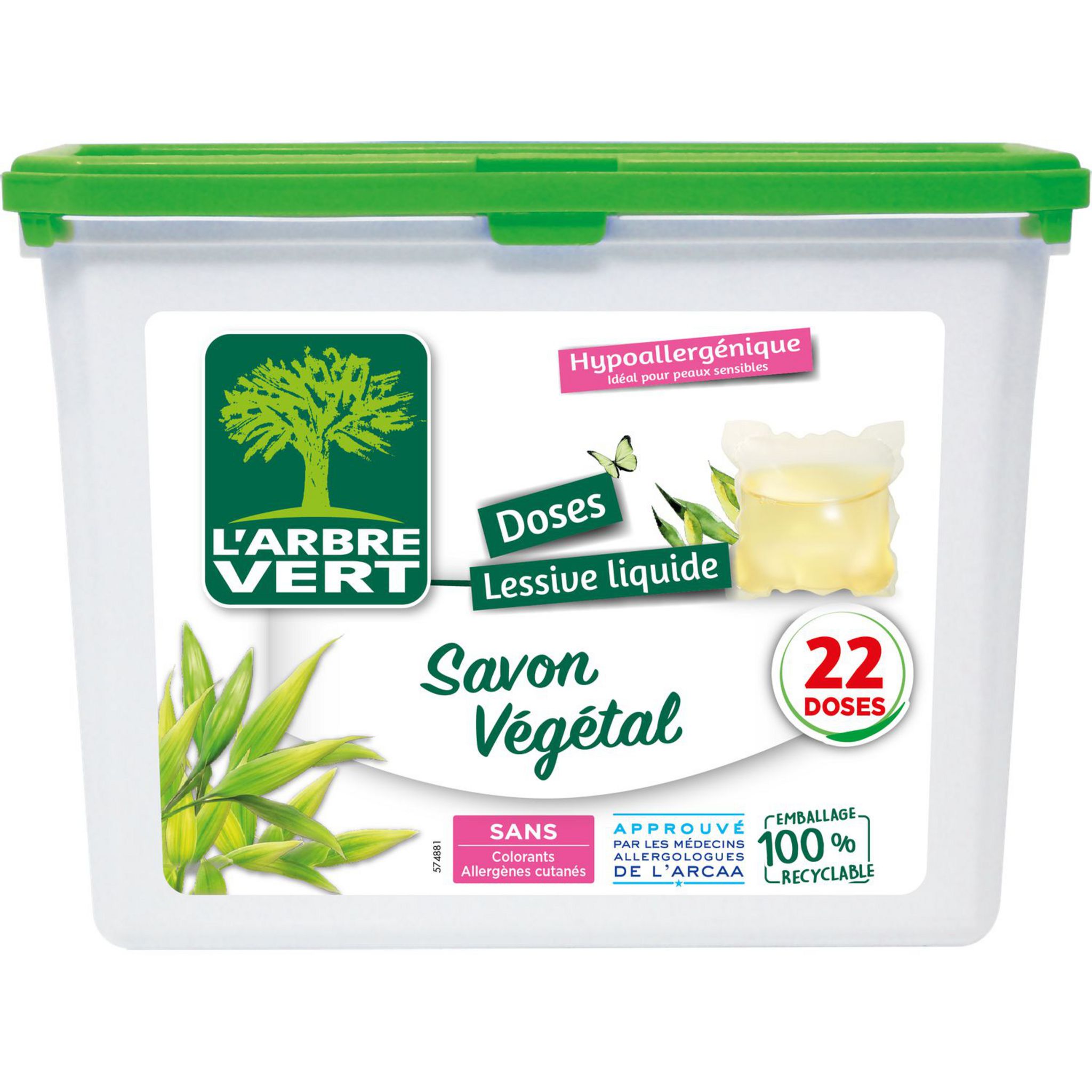 L'Arbre Vert Doses Lessive Liquide Savon Végétal - Hypoallergénique - 22 Doses