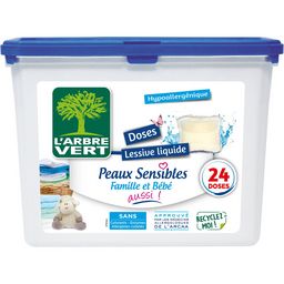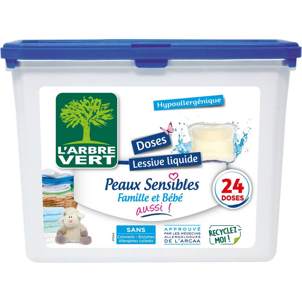 › Ne pas mettre la dose dans le bac à produit, › Ne pas utiliser pour le lavage à la main, › Manipuler avec des mains sèches, › Ne pas ouvrir, déchirer, écraser ou percer. Ne pas séparer 2 doses collées, › Ce produit contient à sa surface un agent au goût amer pour éviter l’ingestion accidentelle par les enfants, › Bien refermer la boite après chaque utilisation, › Se laver les mains après utilisation, › En cas d’eau dure, les fibres des vêtements deviennent rêches. Utiliser un adoucissant pour un meilleur respect des peaux sensibles, idéalement sans trop de parfum et sans substances sensibilisantes, › En cas de résidus sur le linge, rincer simplement à l’eau chaude.