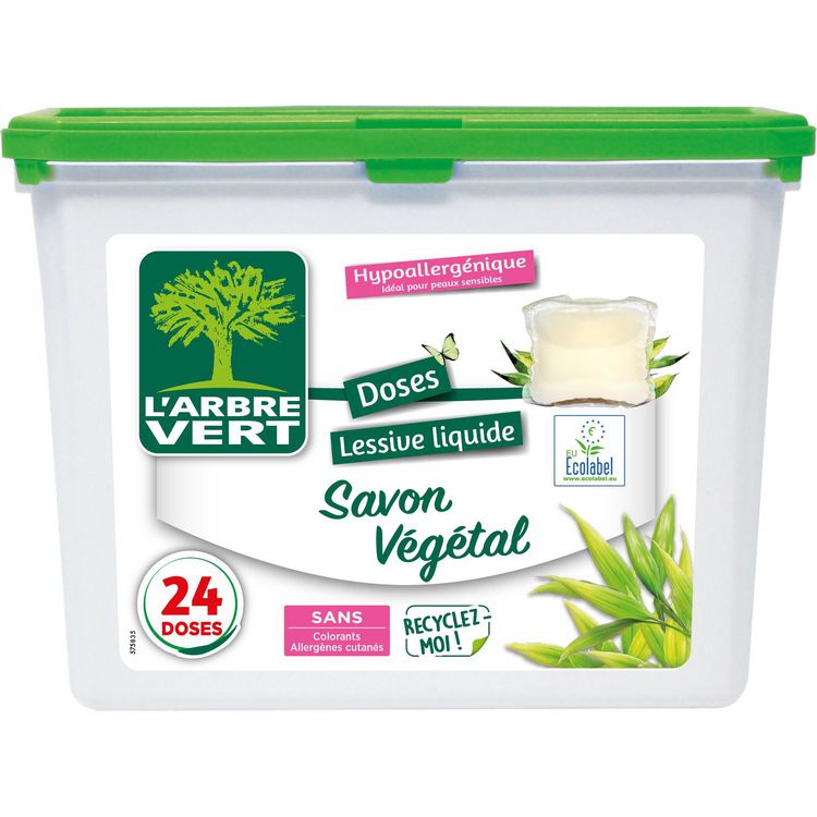 L'Arbre Vert Doses Lessive Liquide Ecolabel Savon Végétal - Hypoallergénique - 24 Doses