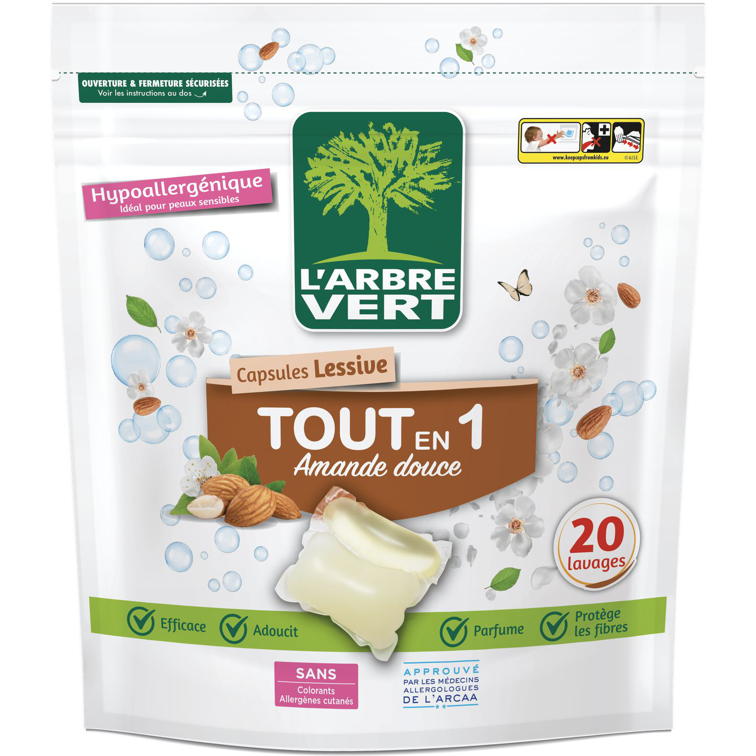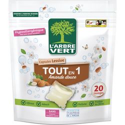 L'Arbre Vert Capsules Lessive tout en 1 Amande douce - Hypoallergénique - 20 Lavages