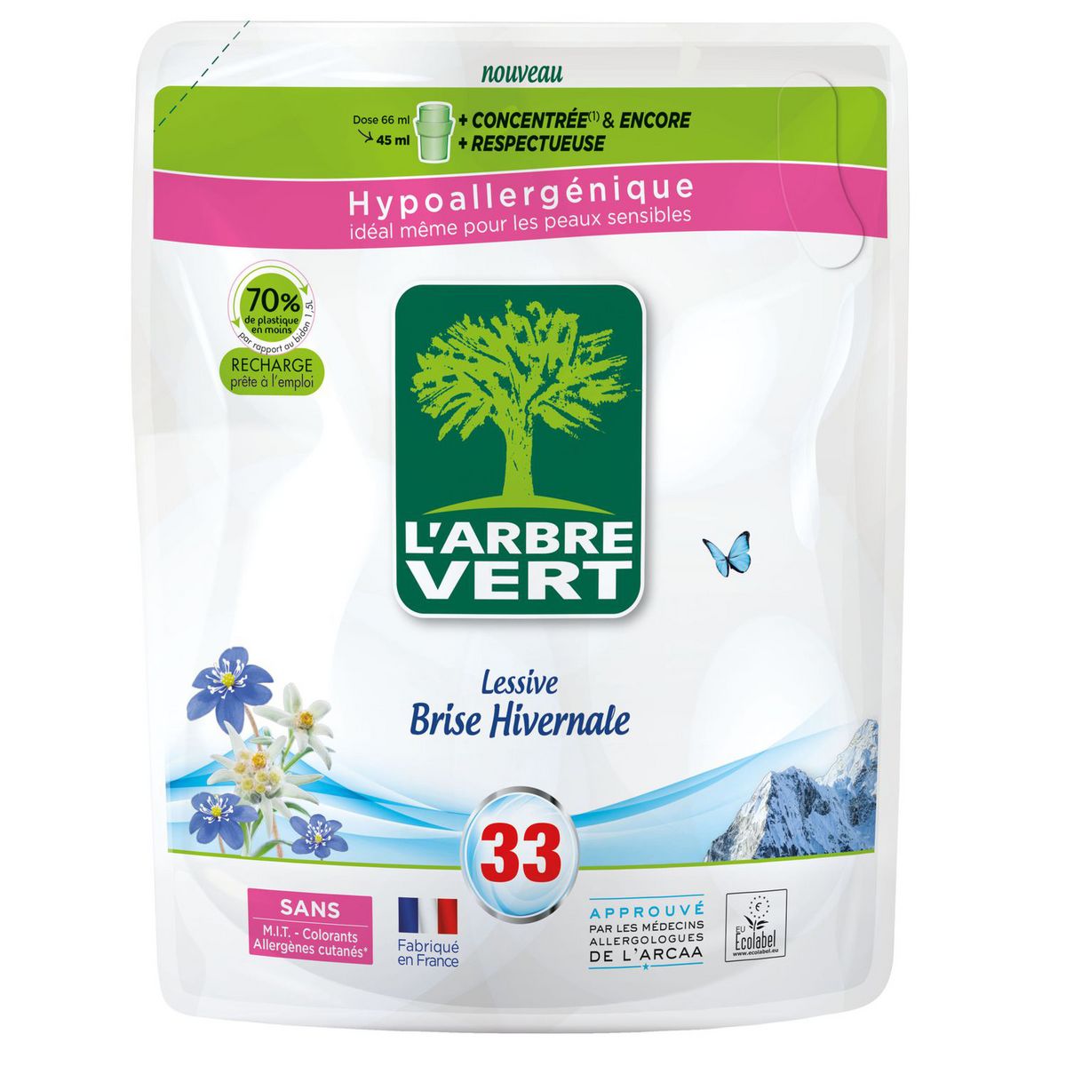 Recharge lessive liquide concentrée brise hivernale hypoallergénique