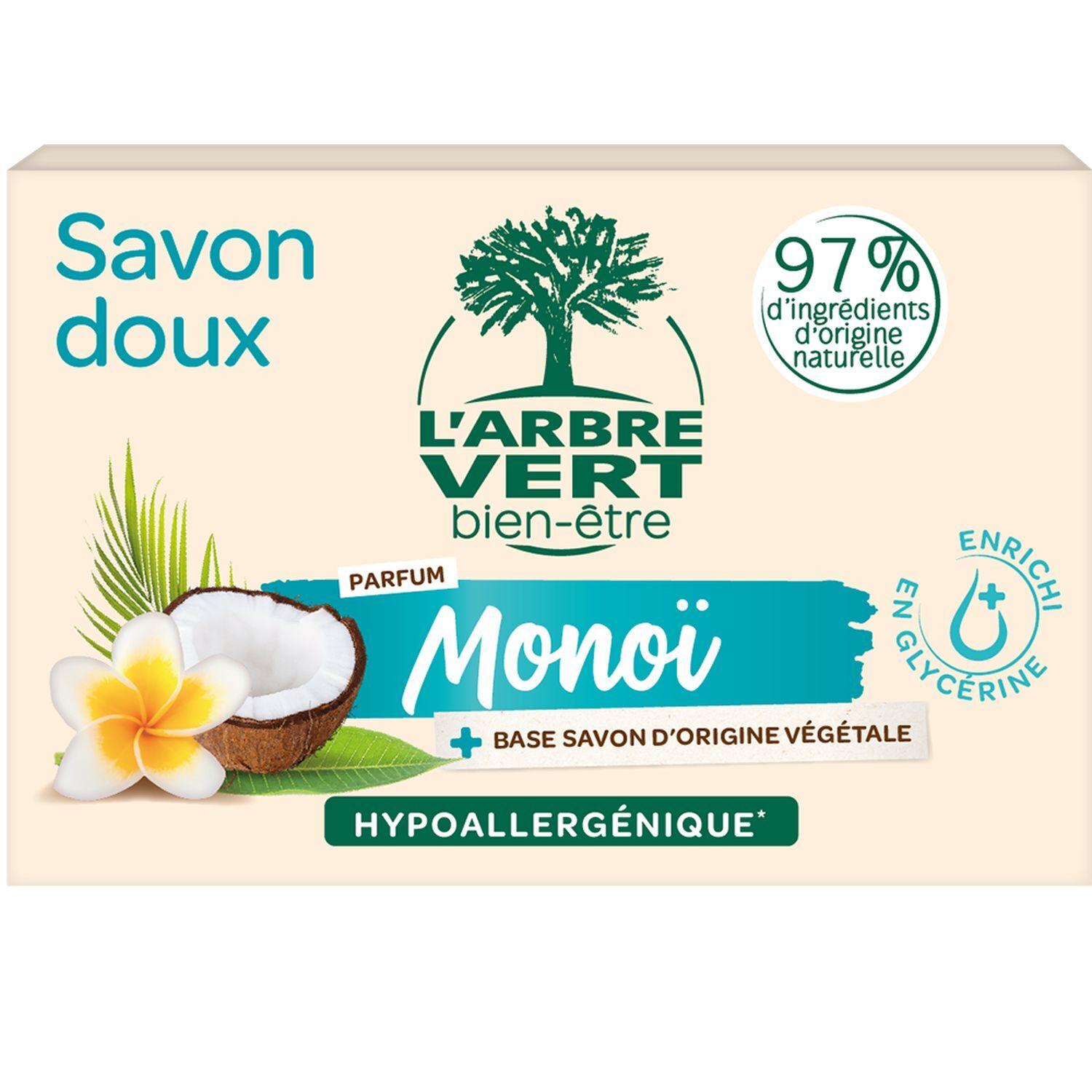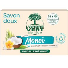 L'Arbre Vert Bien-être Savon solide doux parfum Monoï - Hypoallergénique - 97% d'ingrédients d'origine naturelle 90g