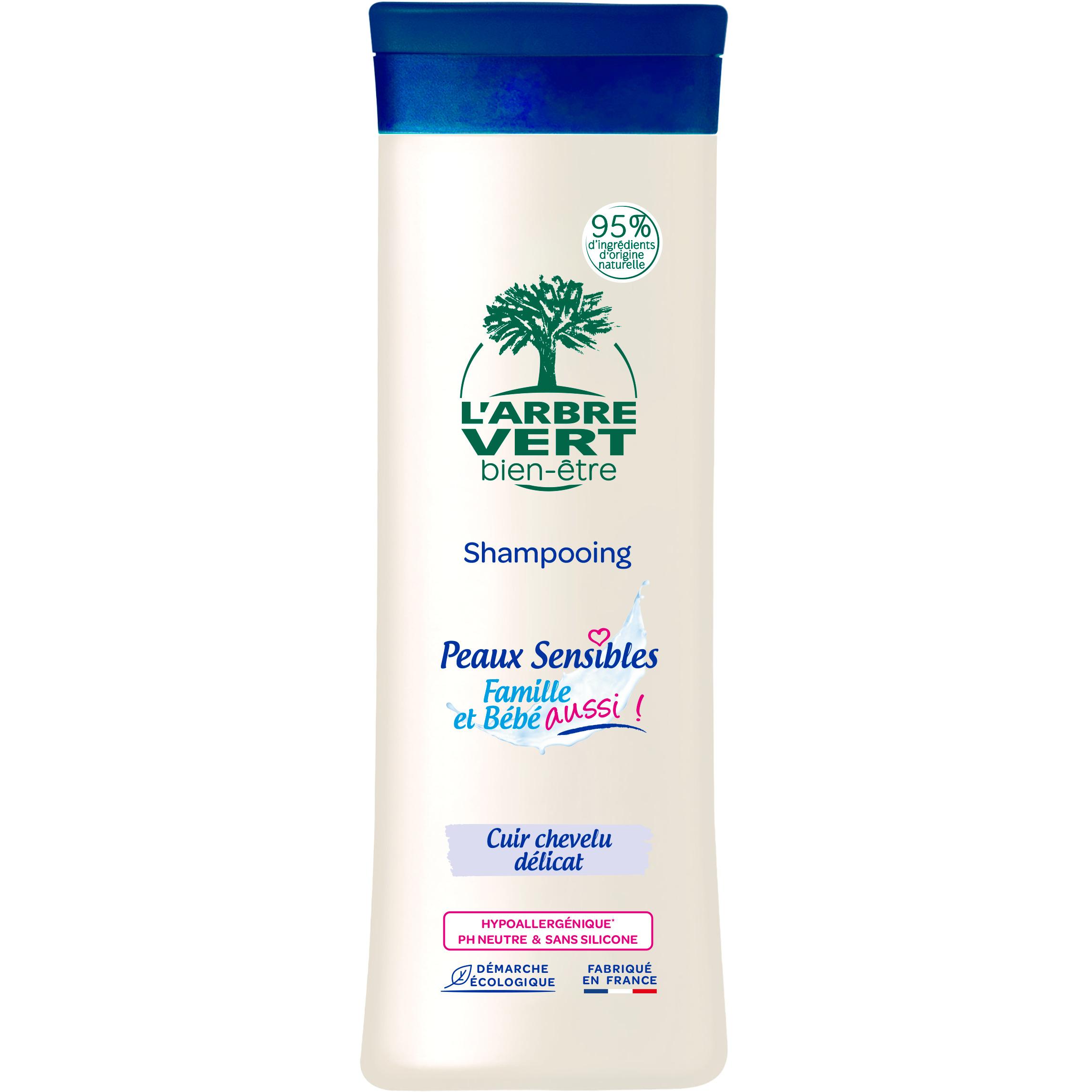 Ce shampooing Peaux Sensibles nettoie en douceur, protège et apaise les cuirs chevelus délicats de toute la Famille et de Bébé aussi, dès la naissance. Il rend les cheveux plus doux, plus souples et pour les plus grands, faciles à coiffer.RESPECT DE LA PEAU? Hypoallergénique, conçu pour minimiser le risque d?allergie cutanée*.? pH neutre pour la peau.DÉMARCHE ÉCOLOGIQUE? 95% d?ingrédients d?origine naturelle.? Formulé à partir d?ingrédients à écotoxicité réduite.? Sans silicone persistant dans l?environnement.? Fabriqué à Saint-Benoît (86) dans notre usine engagée pour l?environnement.*Nous excluons de ce produit les substances responsables d?allergie cutanée répertoriées à l?Annexe III du Règlement (CE) n°1223/2009.