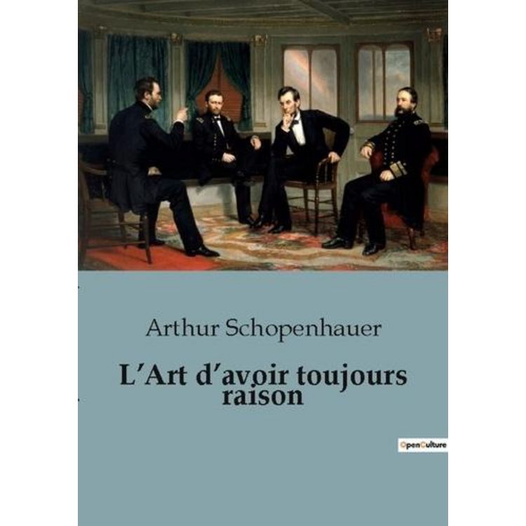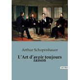 L'Art d'avoir toujours raison est une oeuvre du philosophe allemand Arthur Schopenhauer qui traite de l'art de la controverse ou dialectique éristique . Rédigée vers 1830-1831 et publiée en 1864, elle est parfois éditée en France sous le titre de La Dialectique éristique.Auteur : Schopenhauer Arthu