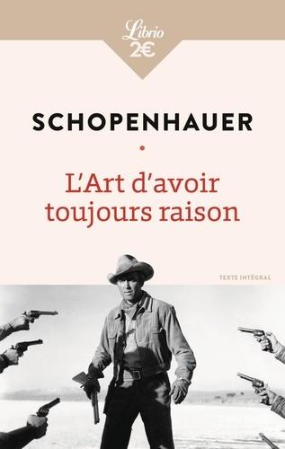 Vous avez tort mais refusez de l'admettre ? Avec humour et perspicacité, ce petit précis recense et analyse les stratagèmes et les ruses pour sortir vainqueur de tout débat, dispute ou joute verbale. Schopenhauer se livre à une savoureuse réflexion sur le langage et la dialectique, pour le plus grand plaisir des amoureux de la contradiction. Ces conseils, aussi précieux que sarcastiques, sont suivis de deux essais incisifs sur la pensée et la lecture : les livres nourrissent-ils notre réflexion, ou nous empêchent-ils de penser par nous-mêmes ? L'Art d'avoir toujours raison est suivi de La Lecture et les Livres et Penseurs personnels.
